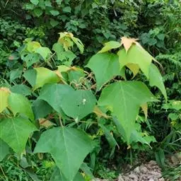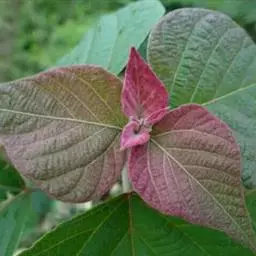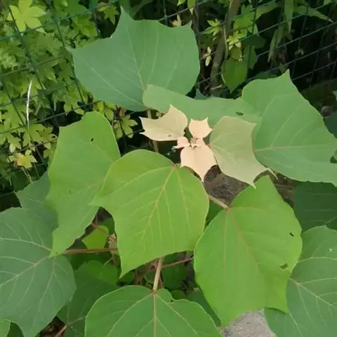 本变种的叶阔心形,长8-19厘米,宽6-13厘米,被柔毛或无毛;雌花序长4-5厘米,粗壮,具花8-12朵;蒴果具2 (-3)个分果爿。花果期5-8月。