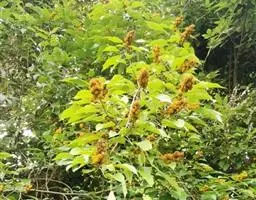 花雌雄异株,总状花序或下部有分枝;雄花序顶生,稀腋生,长5-15厘米;苞片钻状,长约2毫米,密生星状毛,苞腋有花2-5朵;花梗长约4毫米;雄花:花萼裂片3-4,卵状长圆形,长约3毫米,外面被绒毛;雄蕊40-75枚,花丝长约2毫米,花药长圆形,药隔狭。雌花序顶生,长5-8厘米,苞片长三角形;雌花:花梗长约3毫米;花萼裂片5,卵状披针形,长约3.5毫米,外面被绒毛,具颗粒状腺体;花柱2 (-3)枚,柱头长约3毫米,被星状毛,密生羽毛状突起。