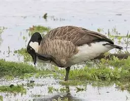 黑雁(学名:Branta bernicla)体长56-61厘米,翼展110-120厘米,体重1100-1700克 ,寿命13年。是中等体型的深灰色雁。嘴和脚黑,尾下羽白色。灰色的颈部两侧具特征性白色图纹,有时在前颈形成半领。胸侧多近白色纹。雏鸟颈部无白斑,但翅上多白色横纹。为典型的冷水性海洋鸟,耐严寒,喜栖于海湾、海港及河口等地。少与其他种类混群。近水面低飞,涨大潮时栖于沿海港湾。觅食于沿海草场。主要以青草或水生植物的嫩芽、叶、茎等为食,也吃根和植物种子,冬季有时还吃麦苗等农作物的幼苗。迁徙时常集成大群,白天飞翔,傍晚降落到湖泊等水域休息和觅食,常常发出高叫声,极为嘈杂。分布于北极圈以北、北冰洋沿岸及其附近岛屿。冬季迁到中国东北及东部沿海地区,最南至福建沿海和台湾,在中国为冬候鸟。