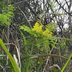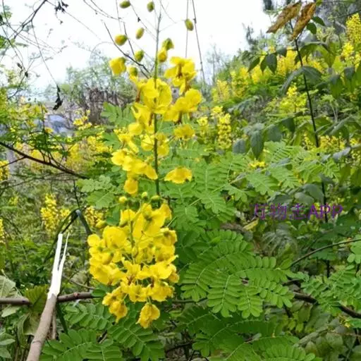 云实又名云英,草云母,臭草,羊石子草,老虎刺尖,杉刺,水皂角,虎头刺,倒挂刺,阎王刺,爬墙刺,猫爪刺,斗米虫树,倒搭刺,山油皂,黄花刺。藤本;树皮暗红色;枝、叶轴和花序均被柔毛和钩刺。二回羽状复叶长20-30厘米;羽片3-10对,对生,具柄,基部有刺1对;小叶8-12对,膜质,长圆形,长10-25毫米,宽6-12毫米,两端近圆钝,两面均被短柔毛,老时渐无毛;托叶小,斜卵形,先端渐尖,早落。总状花序顶生,直立,长15-30厘米,具多花;总花梗多刺;花梗长3-4厘米,被毛,在花萼下具关节,故花易脱落;萼片5,长圆形,被短柔毛;花瓣黄色,膜质,圆形或倒卵形,长10-12毫米,盛开时反卷,基部具短柄;雄蕊与花瓣近等长,花丝基部扁平,下部被绵毛;子房无毛。荚果长圆状舌形,长6-12厘米,宽2.5-3厘米,脆革质,栗褐色,无毛,有光泽,沿腹缝线膨胀成狭翅,成熟时沿腹缝线开裂,先端具尖喙;种子6-9颗,椭圆状,长约11毫米,宽约6毫米,种皮棕色。花果期4-10月。