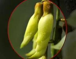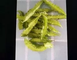 种子长圆形,长约1cm,宽约6mm。外皮棕黑色,有纵向灰黄色纹理及横向裂缝状环圈。种皮坚硬,剥开后,内有棕黄色子叶2枚。气微,味苦。