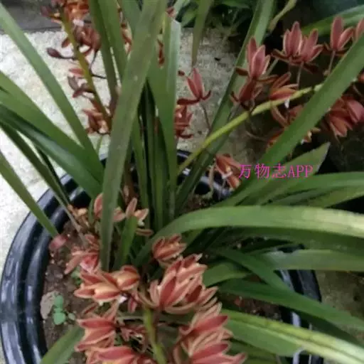变种: 变种:台兰 台兰(Cymbidium floribundum var.pumilum),又称小蜜蜂兰、蒲兰、金棱边、蜂子兰、串兰、方兰。台兰与原种多花兰甚相似,但较矮小,叶片短而窄,假鳞茎也较小。叶片光亮,叶脉也不像多花兰那样明显。花茎长15~30厘米,直立或向斜上方生长,挺直,有花15~40朵,花稍小,红褐色,无香味。花期4~5月份。中国栽培较普及,在日本栽培较多。分布于浙江、福建、广东、广西、湖北、湖南、江西、四川、云南、贵州等省区。