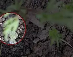 当原球茎和原球茎诱导成根状茎转入25℃、2000勒克斯、8小时光照条件下培养,很快就发生了变化,由原球茎直接分化成幼苗的频率显著提高,根状茎在光的诱导下,很快由根状茎构造转变成地上茎构造,原根状茎的分生组织及其周围组织构造发生变化。根状茎上长出的瘤状物和根毛状体的情况已不再发生,靠顶端的鳞片叶的腋芽开始膨大,5天后已有明显腋芽膨大,10天后,腋芽已发育成一完整的地上部芽体构造,且具3~4片叶,成为单子叶植物特有的构造(图4)。有的根状茎在光条件下还可以从多处分化成苗(图5)。在扫描电镜下同样可观察到进一步发育完整的带有根、茎、叶分化的幼苗(图6)。