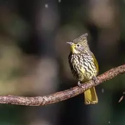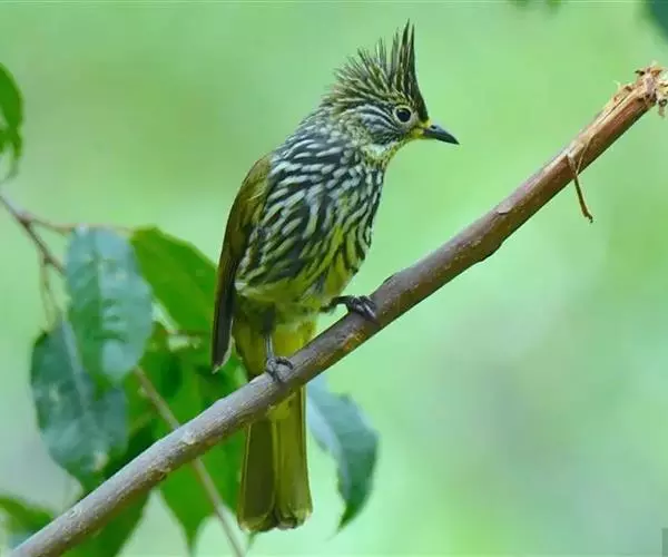 纵纹绿鹎(学名:Pycnonotus striatus):是体型中等大小鸟类,体长20-24厘米。头绿褐色具明显的冠羽,其上具细的白色纵纹。上体橄榄绿色具细的白色纵纹。眼圈浅黄色。喉和尾和覆羽黄色,其余下体暗灰黑色具黄白色纵纹。