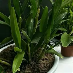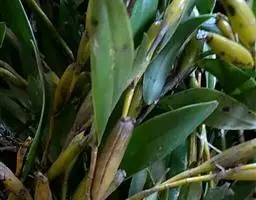 黄石斛:茎直立或下垂,多少肉质,细圆柱形,不分枝,具多数节。叶革质,长圆状披针形,…