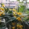 独角石斛,Dendrobium unicum,兰科石斛属植物。花瓣橙黄色,唇瓣反转似犀牛角,…