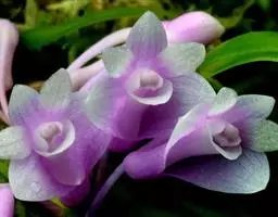玫瑰石斛是兰科石斛属的多年生附生草本植物。茎斜下或下垂,青绿色,圆柱形,…