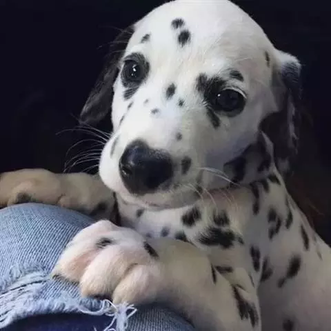 耳朵:耳朵中等大小,根部略宽(符合比例),逐渐变细,尖端略圆。位置较高,贴着头部,耳廓的质地薄而细腻。当大麦町犬警惕时,耳朵顶部与头顶齐平,耳尖延伸到面颊底线的位置。