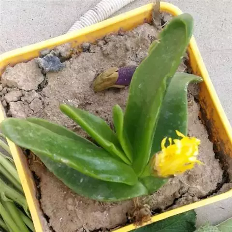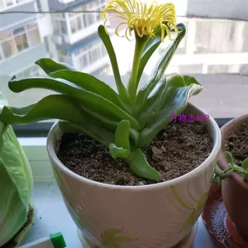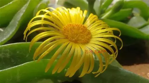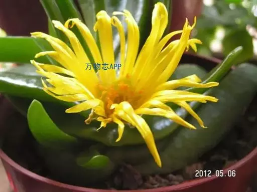 形态特征:茎短或无。叶肉质舌状,对生2裂,长约7CM,鲜绿色,平滑有光泽,叶端略向外反转。秋、冬开花,花自叶丛抽出,具短梗,金黄色。