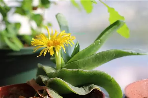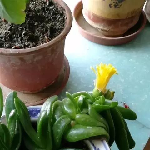 佛手掌又叫舌叶花,主要是指它的肉质叶很象舌头,而整个形态有点象佛手而由此得名。佛手掌原产南非,同一类的品种约有50多种。它的肉质叶嫩绿、半透明而有光泽,开金黄色小花,如果叫翡翠佛手掌更为恰切。用小盆栽植,馈亲友、陈设于书桌、几案,小巧玲珑花形奇特,很具观赏价值,令人喜爱赞不绝口是一种栽培十分容易的盆栽花卉,很适宜广大养花爱好者种植。本人是个爱好者养殖佛手掌已近10个春秋,实践证明这个花儿,它能适应咱这里的气候条件,夏天,虽然已进入半休眠状,但它还能开花确实难能可贵。