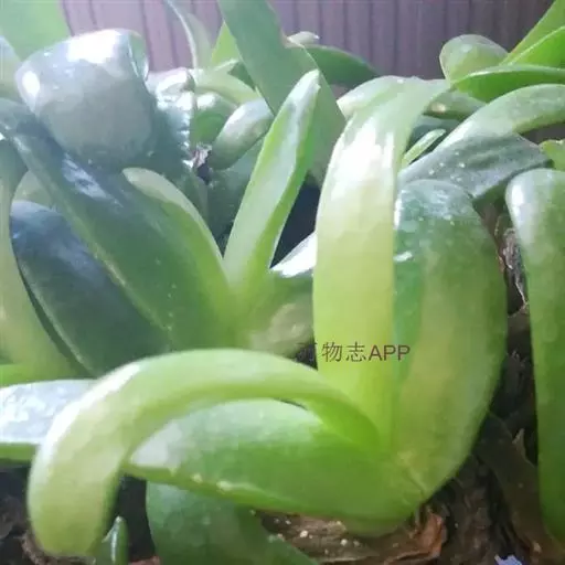 佛手掌为番杏科舌叶花属多肉类植物,学名为Glottiphyllumuncatum,因其肉质叶长6-12厘米,末端呈舌状稍卷曲,叶色鲜绿,叶面光洁透明,叶片紧抱轮生于短茎上,酷似佛手状而得名。
