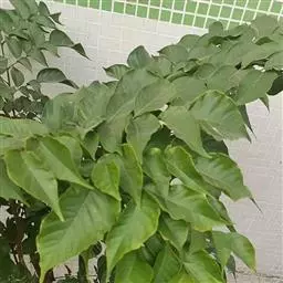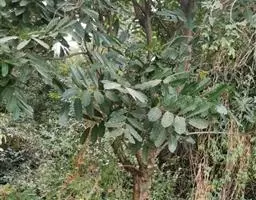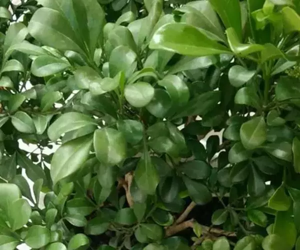 常绿灌木或小乔木,茎多小枝,幼枝顶部具有星状锈色鳞片,后脱落。奇数羽状复叶,互生,叶长5-12(-16)厘米,叶轴和叶柄具狭翅叶轴有窄翅,小叶3—5,对生,厚纸质,长2-7(-11)厘米,宽1-3.5(-5)厘米,倒卵形至长椭圆形,顶端1片最大,下部的远较顶端的为小,先端钝,基部楔形,两面无毛,全缘,叶脉明显,侧脉每边约8条,极纤细,和网脉均于两面微凸起。