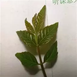 叶轴和叶柄具狭翅,有小叶3-5片;小叶对生,厚纸质,长2-7(-11)厘米,宽1-3.5(-5)厘米,顶端1片最大,下部的远较顶端的为小,先端钝,基部楔形,两面均无毛,侧脉每边约8条,极纤细,和网脉均于两面微凸起。