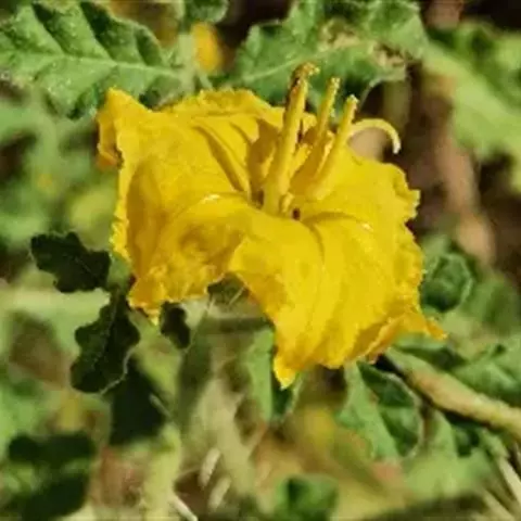 乳茄,茄科茄属直立草本植物,覆盖短的柔毛和扁平尖刺,小枝覆盖长柔毛和扁平刺,刺为蜡黄色,…