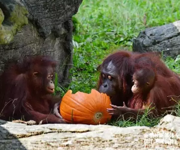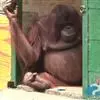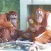 除红猩猩外,非洲的大猩猩,黑猩猩等也被人们称为猩猩,但这称呼是不准确的。(图为青岛动物园的青岛动物园猩猩馆内的一只黑猩猩和上海动物园内的大猩猩母子)