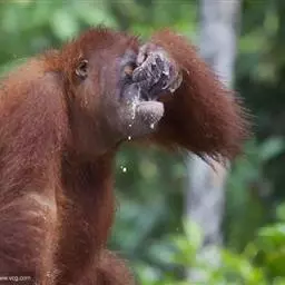 猩猩主要吃果 猩猩饮水 实(比如榴莲、红毛丹、木菠萝、荔枝、芒果、倒捻子、无花果)、嫩枝、花蕾、昆虫、蔓生植物;偶尔也吃鸟卵和小型脊椎动物。香蕉、树叶和嫩枝、无脊椎动物、富含矿物质的泥土、脊椎动物、种子、树木或者藤蔓植物的树皮、喝树洞里面的水、蜂蜜、白蚁等。