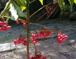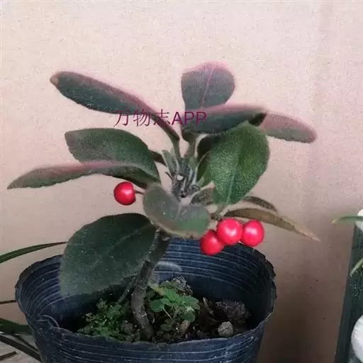 虎舌红 虎舌红株形紧凑,果、叶可全年观赏,花小淡雅,果呈球形、黄豆大小、红色,全年轮番挂果,可长期放置室内;叶面有紫红色茸毛,观赏叶片从不同角度观察呈现光泽多彩,因果实红红火火,象征喜庆吉祥,以其观果观叶的珍贵特色,在1999 年“昆明世界园艺博览会”荣获室内观赏叶植物大奖第1 名。
