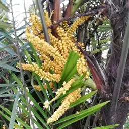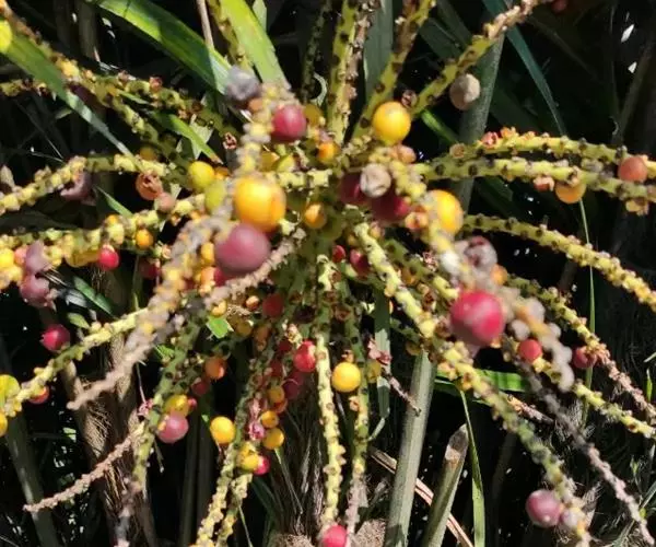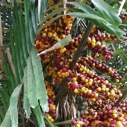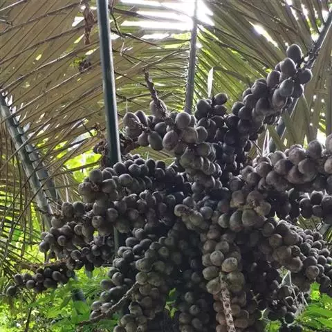 种子采收:鉴定种子是否成熟、能否采收是保证种子发芽的关键。山棕果熟时,果实是紫红色的,剥开果实种子呈黑褐色,胚乳坚硬,表明种子充分成熟,即可采收。
