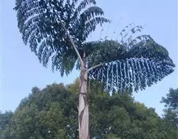 大苗培育可分营养袋栽培和露地大田栽培二种。露地大田育苗,必须做到以下几点:①选择地势平坦,通风向阳,土壤肥力中等,地下水位较低的砂壤土田块作苗地。②选择两水较多的晚春时段移苗,一般在5月中句至6月上旬。③剪去基部老叶和1/2大叶,减少水分蒸发。④边起苗、边种植(株行距0.5米×0.5米),种后立即浇上定根水。⑤种植后30天,浇施一次低浓度氮、磷、钾复合肥,促进植株恢复生长。以后转入正常田间管理。一般在4-10月份生长季节,施用2-3次肥料,用量为氮磷钾复合肥225千克/公顷,浇施、穴施均可。同时做好中耕除草、病虫防治工作。经3-4年精心管理,一般山棕株高2米左右,园林置景,盘栽观赏均可。