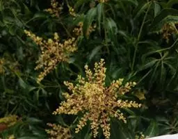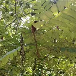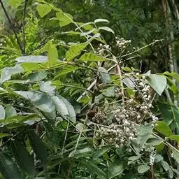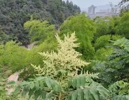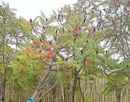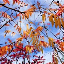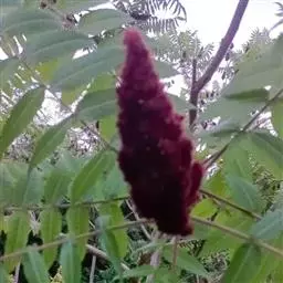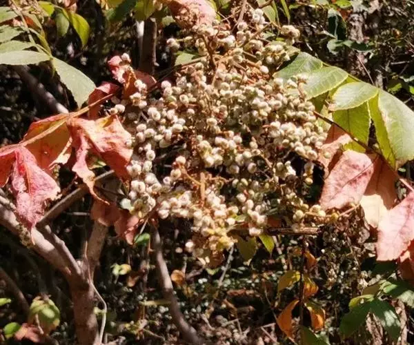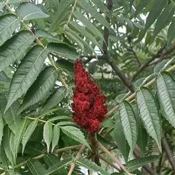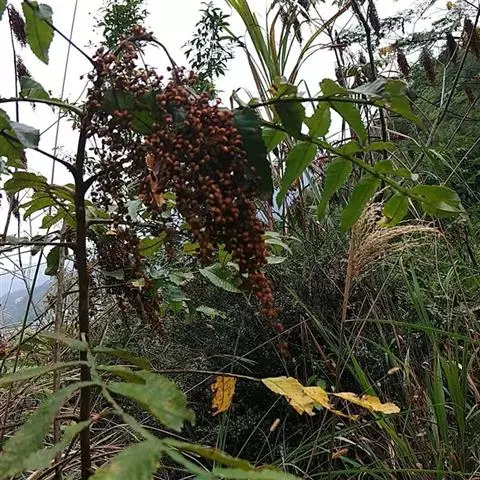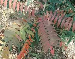 盐麸木(学名:Rhus chinensis Mill.),漆树科盐麸木属落叶小乔木植物。高达10米,小枝棕褐色,叶片多形,基部圆形,叶面暗绿色,叶背粉绿色,无柄。圆锥花序宽大,多分枝,雌花序较短,密柔毛;苞片花白色,花瓣长圆形,开花时外卷;核果球形,成熟时红色。8—9月开花,10月结果。盐麸木可以吸收土壤中的盐分,并将其以盐水的形式分泌出,待水分蒸发,盐分附着于树体上,因此得名。 盐麸木为广布物种,现分布于印度、日本等国。在中国除东北、内蒙古和新疆外,其余省区均有分布。喜光、喜温暖湿润气候,适应性强,耐寒。对土壤要求不严。生于中高海拔的向阳山坡、沟谷等疏林或灌丛中。盐麸木有种子繁殖和压根、扦插方式。《日华子诸家本草》《本草纲目》记载盐麸木可“生津降火,化痰,润肺滋肾,消毒,止痢收汗”。盐麸木鲜嫩茎叶中富含氮、磷酸等,且茎叶柔软多汁易腐烂分解,是一种很好的绿肥。另外,盐麸木的嫩茎叶可作为野生