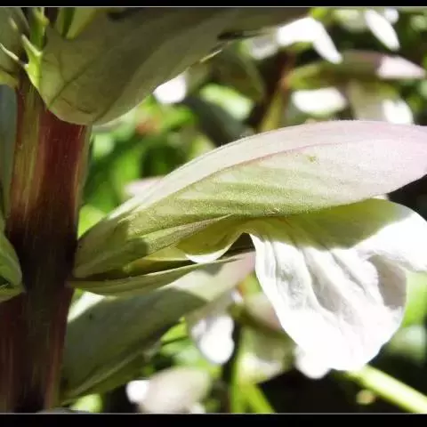 叶纸质,椭圆形或倒卵形,长10-17厘米,宽3-6厘米,顶端短渐尖或急尖,基部渐狭,干时草黄色或绿黄色;常有颗粒状隆起;中脉粗大,腹面稍凸,背面呈半柱状凸起,侧脉每边6-7条,两面近同等凸起,在背面半透明;叶柄长0.5-1.5厘米。穗状花序顶生,密生;苞片大,覆瓦状重叠,阔卵形或近圆形,长1-1.5厘米,宽约1厘米,被微柔毛;萼裂片披针状线形,长约3毫米;花冠白色或粉红色,长1.5-1.6厘米,上唇长圆状卵形,下唇浅3裂。蒴果长约8毫米,被柔毛。花期冬季。