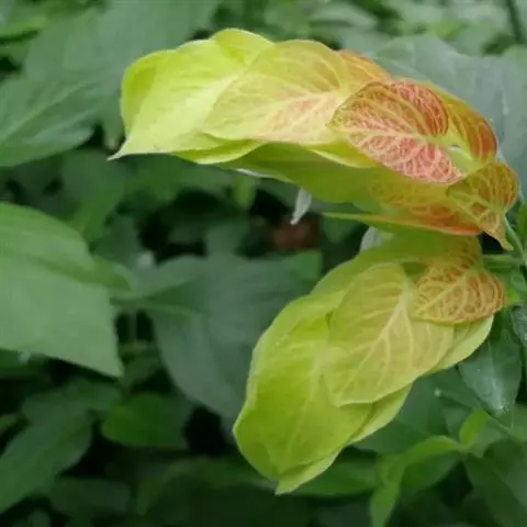 虾衣花,是爵床科爵床属多年生草本或常绿亚灌木植物。虾衣花茎圆形,细弱,基部多分枝,…