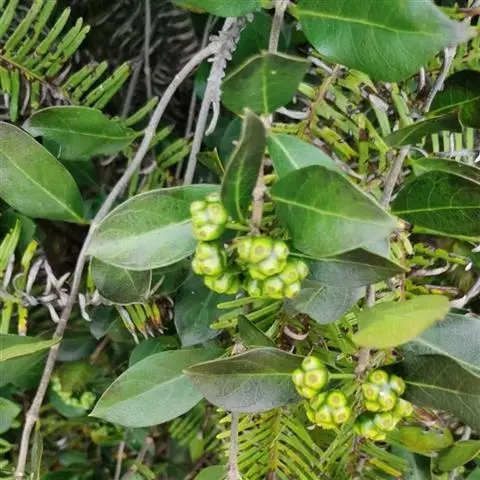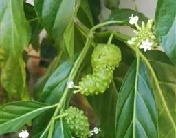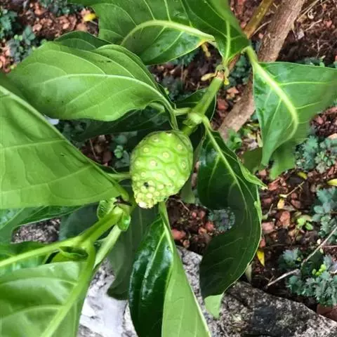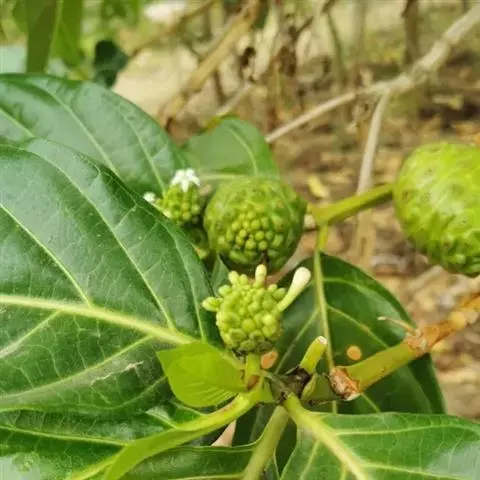 灌木至小乔木, 高1-5米; 茎直, 枝近四棱柱形。叶交互对生, 长圆形、椭圆形或卵圆形,长12-25厘米,两端渐尖或急尖,通常具光泽,无毛,全缘;叶脉两面凸起,中脉上面中央具一凹槽,侧脉每侧6(-5或7)条,下面脉腋密被短束毛;叶柄长5-20毫米;托叶生叶柄间,每侧1枚,宽,上部扩大呈半圆形,全缘,无毛。头状花序每隔一节一个,与叶对生,具长约1-1.5厘米的花序梗;花多数,无梗;萼管彼此间多少粘合,萼檐近截平;花冠白色,漏斗形,长约1.5厘米,喉部密被长柔毛,顶部5裂,裂片卵状披针形,长约6毫米;雄蕊5,罕4或6,着生花冠喉部,花丝长约3毫米,花药内向,上半部露出冠口,线形,背面中部着生,长约3毫米,二室,纵裂;花柱约与冠管等长,由下向上稍扩大,顶二裂,裂片线形,略叉开,子房4室,有时有1-2室不育,每室具胚珠1颗,胚珠略扁,其形状随着生部位不同而各异,通常圆形,长圆形或椭圆形,或其他形,横生,下垂或不下垂。果柄长约2厘米;聚花核果浆果状,卵形,幼时绿色,熟时白色约如初生鸡蛋大,径约2.5厘米,每核果具分核4(-2或3),分核倒卵形,稍内弯,坚纸质,具二室,上侧室大而空,下侧室狭,具1种子;种子小,扁,长圆形,下部有翅;胚直,胚根下位,子叶长圆形;胚乳丰富,质脆。花果期全年。
