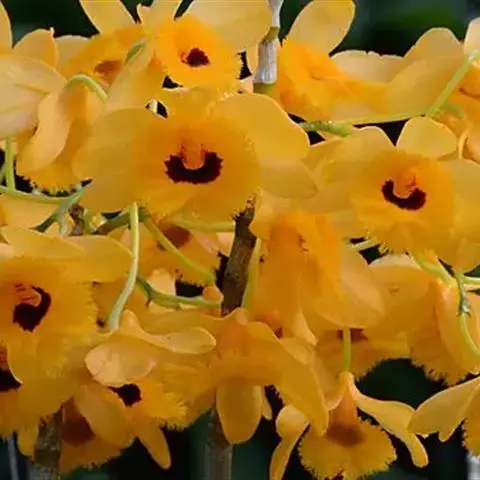聚石斛是兰科石斛属植物。茎假鳞茎状,密集或丛生,多少两侧压扁状,纺锤形或卵状长圆形,长1-5厘米,…