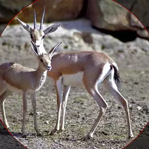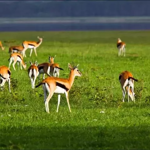 汤普森瞪羚(Gazelle thomsonii)是一个很好的例子,肩高60-80厘米,毛色为棕色和白色,身体两侧有一条黑线。雄性的角又长又弯。当瞪羚受惊吓时,瞪羚先是不紧不慢跑,然后突然跳得很高。这种行为是由阿默兹·扎哈维在研究瞪羚时发现的。