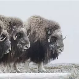 麝牛,是偶蹄目牛科麝牛属哺乳动物。麝牛体型大,但低矮粗壮,头大,吻部宽,眼小;雌雄均具角,四肢短粗,…