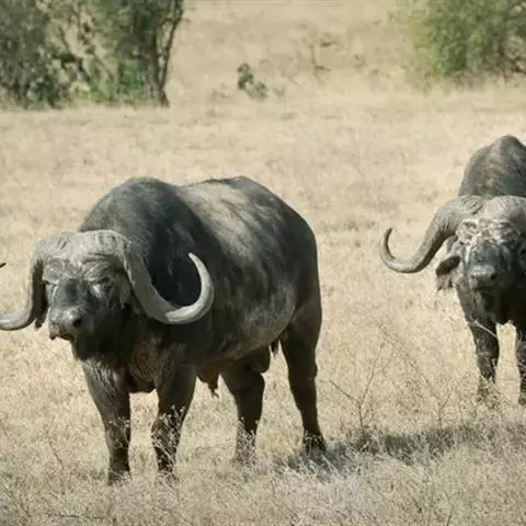 非洲野水牛:共有5个亚种。头体长2.1-3.4米,身高1-1.7米,体重300-900千克。胸膛宽…