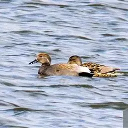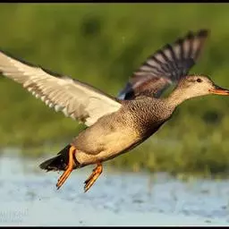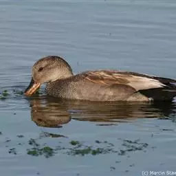赤膀鸭,是雁形目鸭科鸭属中型游禽。雄鸟嘴黑色,脚橙黄色。头侧及头上部浅白色,满杂以褐色斑点,…
