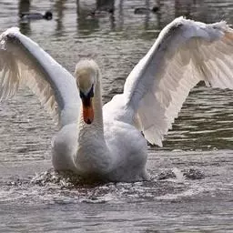 扁嘴天鹅:体长90-115厘米,体羽白色,羽端黑色,在飞行时则很明显。雁喙和脚红色。…