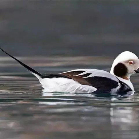 长尾鸭体长约58厘米,是中等体型的灰、黑及白色鸭,中央尾羽特长,雄鸟胸部的黑色斑块为特征。…