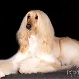 阿富汗猎犬全身披丝绢状的长毛,毛色鲜艳,呈多种颜色,背中线附近毛短,…