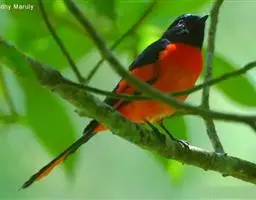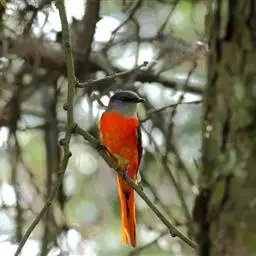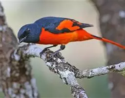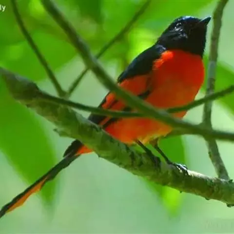灰喉山椒鸟:共有8个亚种。体长18-22厘米。雄鸟头部和背亮黑色,腰、尾上覆羽和下体朱红色,…