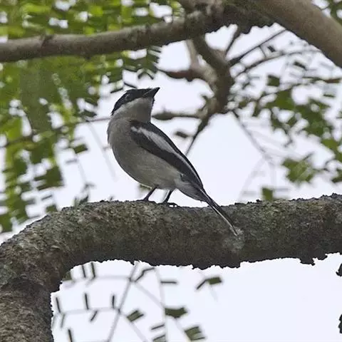 灰山椒鸟:体长18-20厘米。上体灰色或石板灰色,两翅和尾黑色,翅上具斜行白色翼斑,外侧尾羽先端白色。…