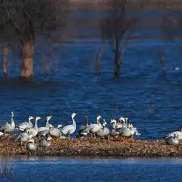 斑头雁是雁形目鸭科雁属鸟类,又称白头雁、黑纹头雁。通体大都灰褐色,头和颈侧白色,…
