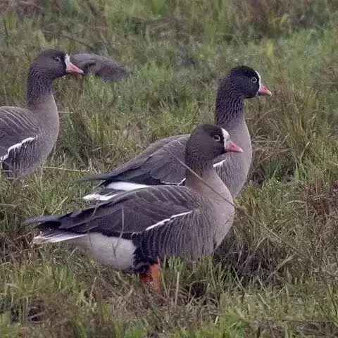 豆雁,雁形目鸭科。成鸟头、颈、背灰褐色,带淡黄色羽缘;尾上覆羽白色,尾羽黑褐色带白端,…
