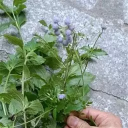 藿香蓟,菊科霍香蓟属一年生草本植物,无明显主根;茎粗壮,底部径4毫米,茎枝淡红色,…
