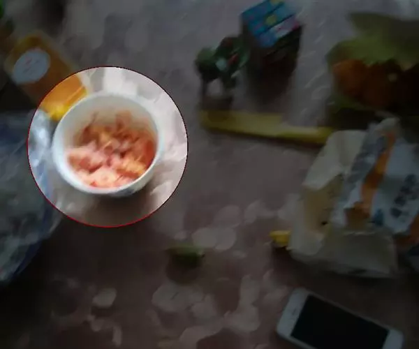 用小刀或者筷子划开一个口(口子不要太小,太小的话再倒回去的时候容易把奶皮压在下面)。