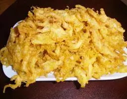 鸡蛋打散取蛋白,加入2勺白糖搅匀。