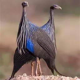 鹫珠鸡:是珠鸡科中体形最大的一种,因头颈部像兀鹫而得名。雌雄羽色相似,为黑色基底上遍布白色点斑,…