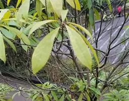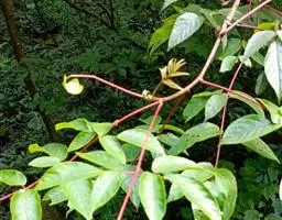 叶圆形或卵形,具不明显的波状缘。上面深绿色,有褐色斑纹,下面红褐色,有黑色小斑点。花黄色,径约10厘米。