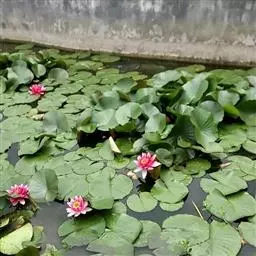 红花睡莲,多年生浮水植物。叶浮于水面,卵形,革质,表面绿色,背面紫红色,幼叶红色,花昼开夜合,浮于…