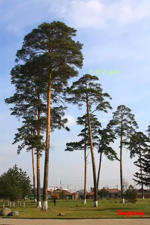 长白松(学名:Pinus syluestriformis (Takenouchi)T.Wang ex Cheng):常绿乔木,高25-32米,胸径25-100厘米;下部树皮淡黄褐色至暗灰褐色,裂成不规则鳞片,中上部树皮淡褐黄色到金黄色,裂成薄鳞片状脱落;冬芽卵圆形,有树脂,芽鳞红褐色;一年生枝浅褐绿色或淡黄褐色,无毛,3年生枝灰褐色。针叶2针一束,较粗硬,稍扭曲,微扁,雌球花暗紫红色,幼果淡褐色,有梗,下垂。 球果锥状卵圆形,成熟时淡褐灰色;种子长卵圆形或倒卵圆形,微扁,灰褐色至灰黑色,种翅有关节,长1.5-2厘米 。 长白松天然分布区很狭窄,只见于中国吉林省安图县长白山北坡,海拔700-1 600米的二道白河与三道白河沿岸的狭长地段,尚存小片纯林及散生林木。