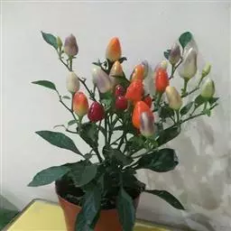 朝天椒茄科辣椒属一年或多年生草本植物;卵形;花通常单只生长于二分叉间,花梗直立,花稍俯垂,…