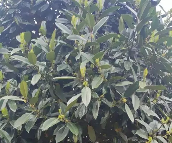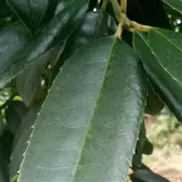 大叶冬青 常绿大乔木,高达20米,胸径60厘米,全体无毛;树皮灰黑色;分枝粗壮,具纵棱及槽,黄褐色或褐色,光滑,具明显隆起、阔三角形或半圆形的叶痕。叶生于1-3年生枝上,叶片厚革质,长圆形或卵状长圆形,长8-19(-28)厘米,宽4.5-7.5 (-9)厘米,先端钝或短渐尖,基部圆形或阔楔形,边缘具疏锯齿,齿尖黑色,叶面深绿色,具光泽,背面淡绿色,中脉在叶面凹陷,在背面隆起,侧脉每边12-17条,在叶面明显,背面不明显;叶柄粗壮,近圆柱形,长1.5-2.5厘米,直径约3毫米,上面微凹,背面具皱纹;托叶极小,宽三角形,急尖。由聚伞花序组成的假圆锥花序生于二年生枝的叶腋内,无总梗;主轴长1-2厘米,基部具宿存的圆形、覆瓦状排列的芽鳞,内面的膜质,较大。