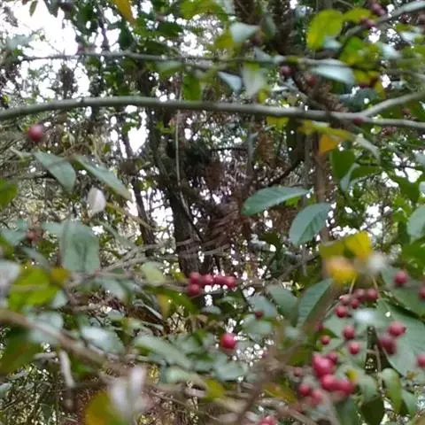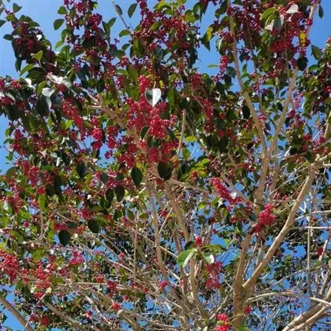 果球形,直径约7毫米,成熟时红色,宿存柱头薄盘状,基部宿存花萼盘状,伸展,外果皮厚,平滑。分核4,轮廓长圆状椭圆形,长约5毫米,宽约2.5毫米,具不规则的皱纹和尘穴,背面具明显的纵脊,内果皮骨质。花期4月,果期9-10月。