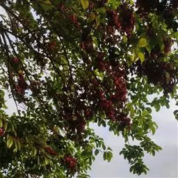 叶、花、果色相变化丰富 ,萌动的幼芽及新叶呈紫红色,正常生长的叶片为青绿色,老叶呈墨绿色。5月花为黄色,秋季果实由黄色变为橘红色,挂果期长,十分美观,具有很高的观赏价值。
